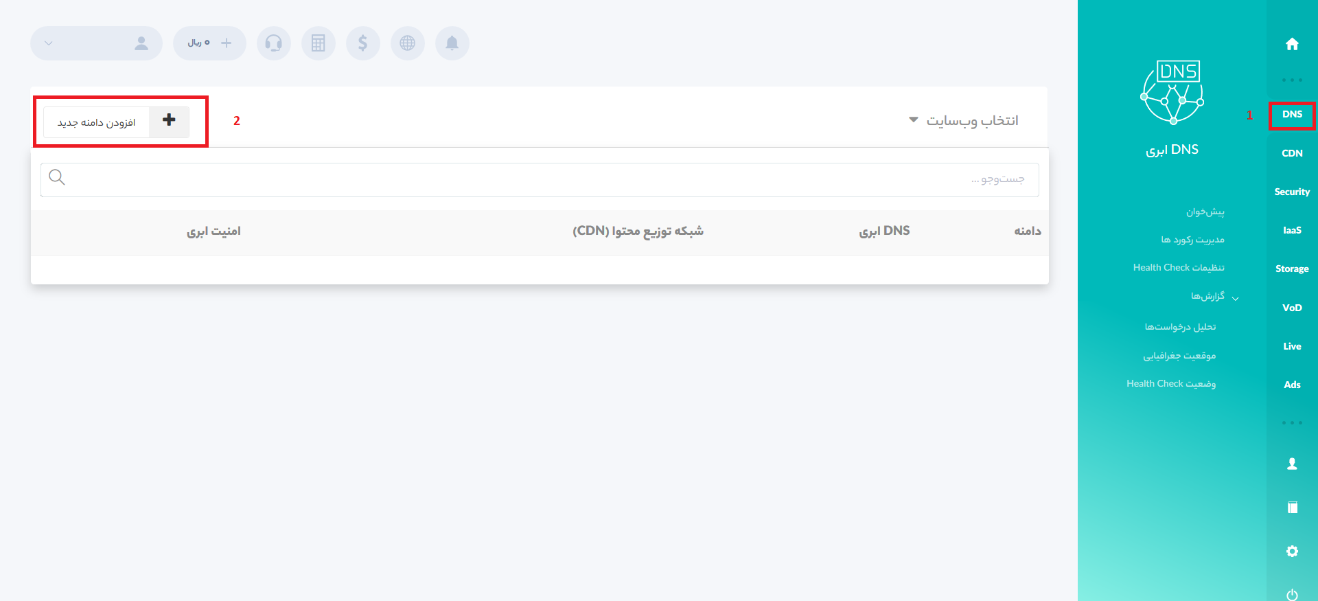4- در این قسمت باید با کلیک بر روی شکل ابر، دامنه یا ساب دامنه هایی که می خواهید از ایران لود شود را به سرویس CDN اضافه کنید